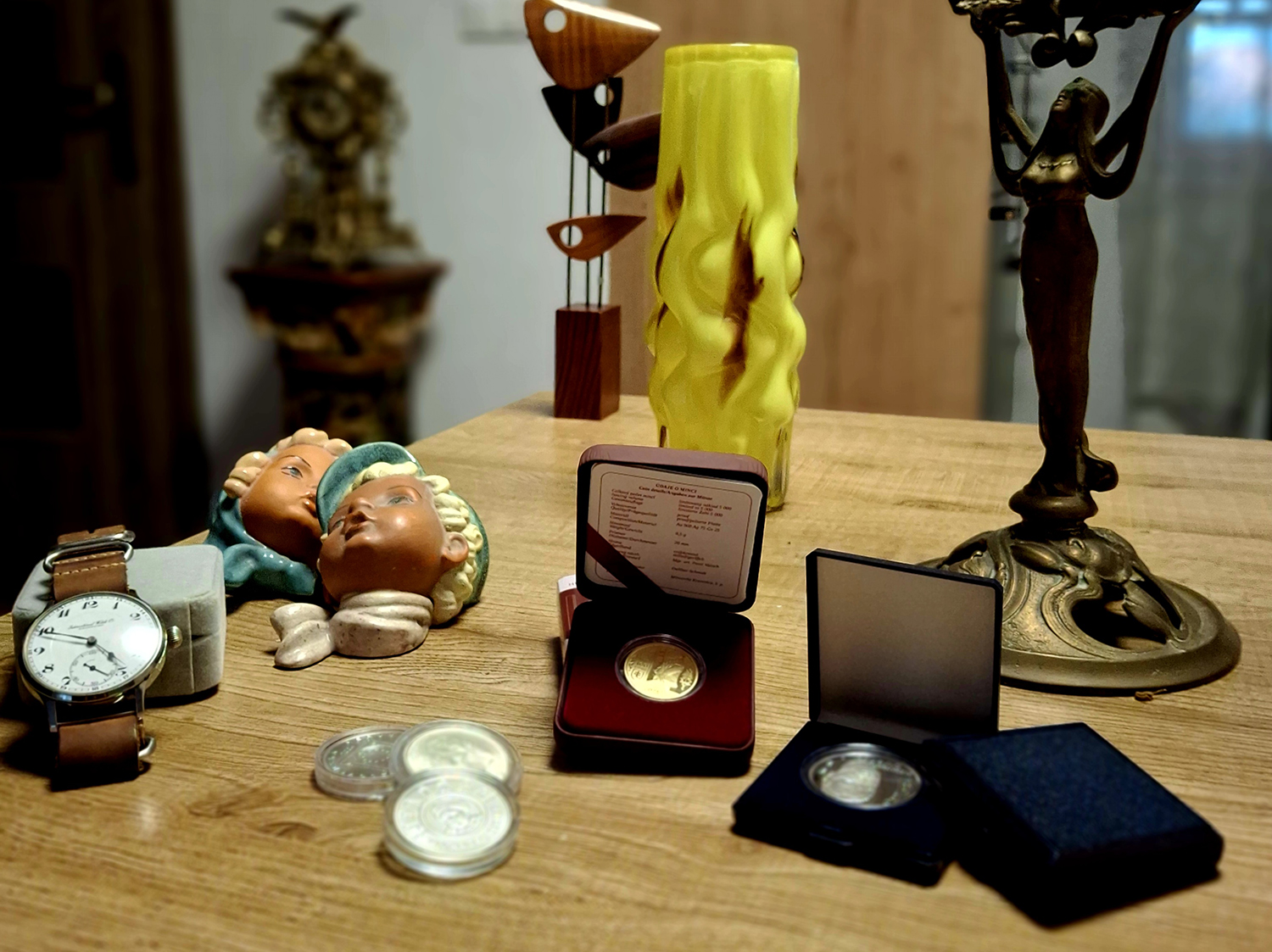 Šperky, hutné sklo, strieborné predmety, sochy, porcelán